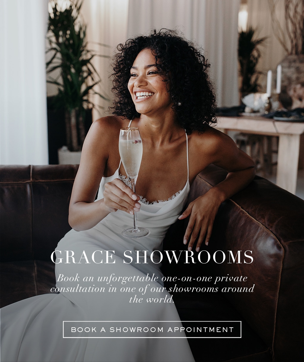 Book your appointment online by selecting your desired showroom under the ‘Showrooms’ tab on our website. Our online calendar allows you to select your desired available time, as well as send notes to your stylist about your favourite GRACE gowns. Alternatively, if you require assistance, you are welcome to your preferred showroom directly or Chat with us online. Locate your preferred showroom details here.