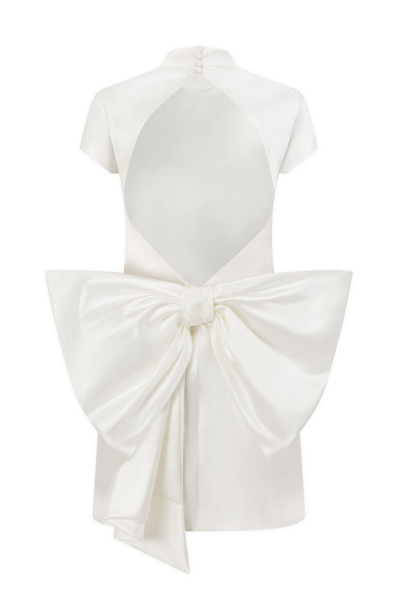 • Open back with draped bow detail