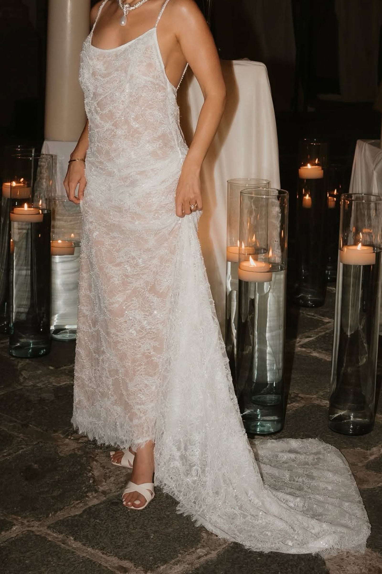Discover a relaxed yet glamorous wedding dress with a 40 cm train. Perfect for European ceremonies, beach weddings, or boat celebrations—she is here for a good time.