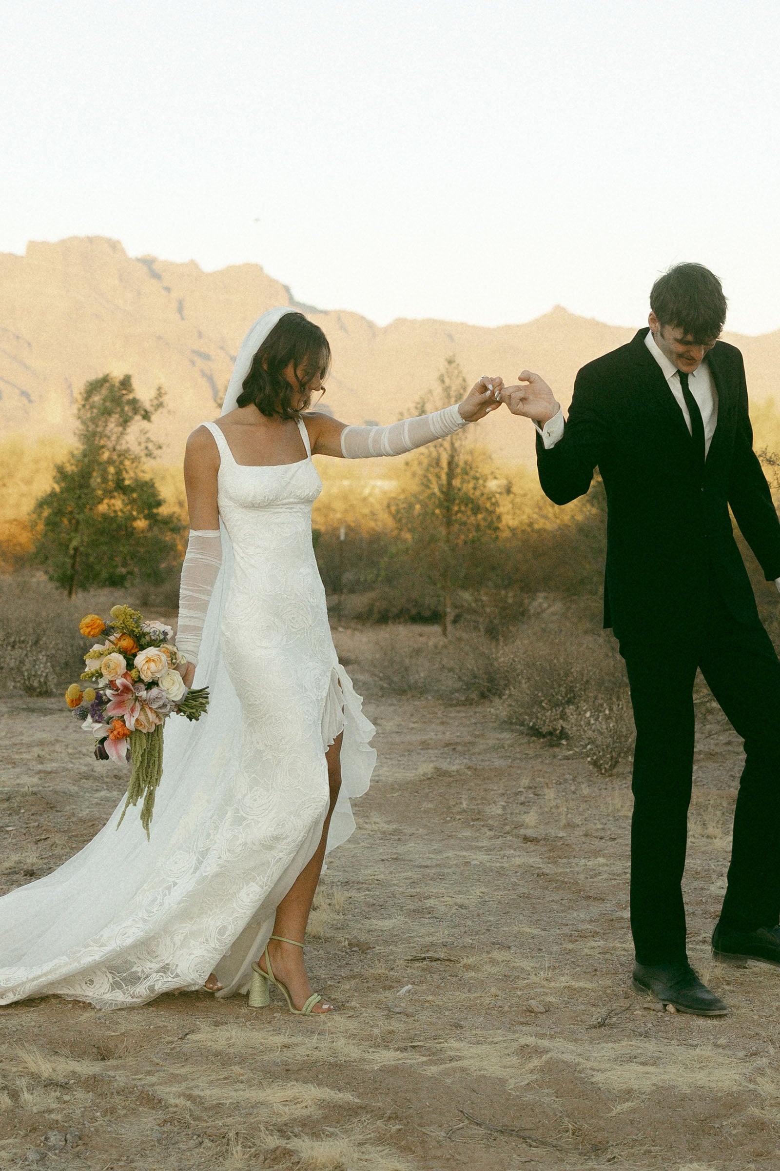 • I loved feeling free and flowy. I didn’t want to feel constricted or heavy in a wedding gown and my dress made me feel so comfortable. The delicate detail in the lace of the gown was beautiful and I love that it was made to fit my body and I didn’t have to stress about gaining or losing weight before my wedding and needing last minute alterations.