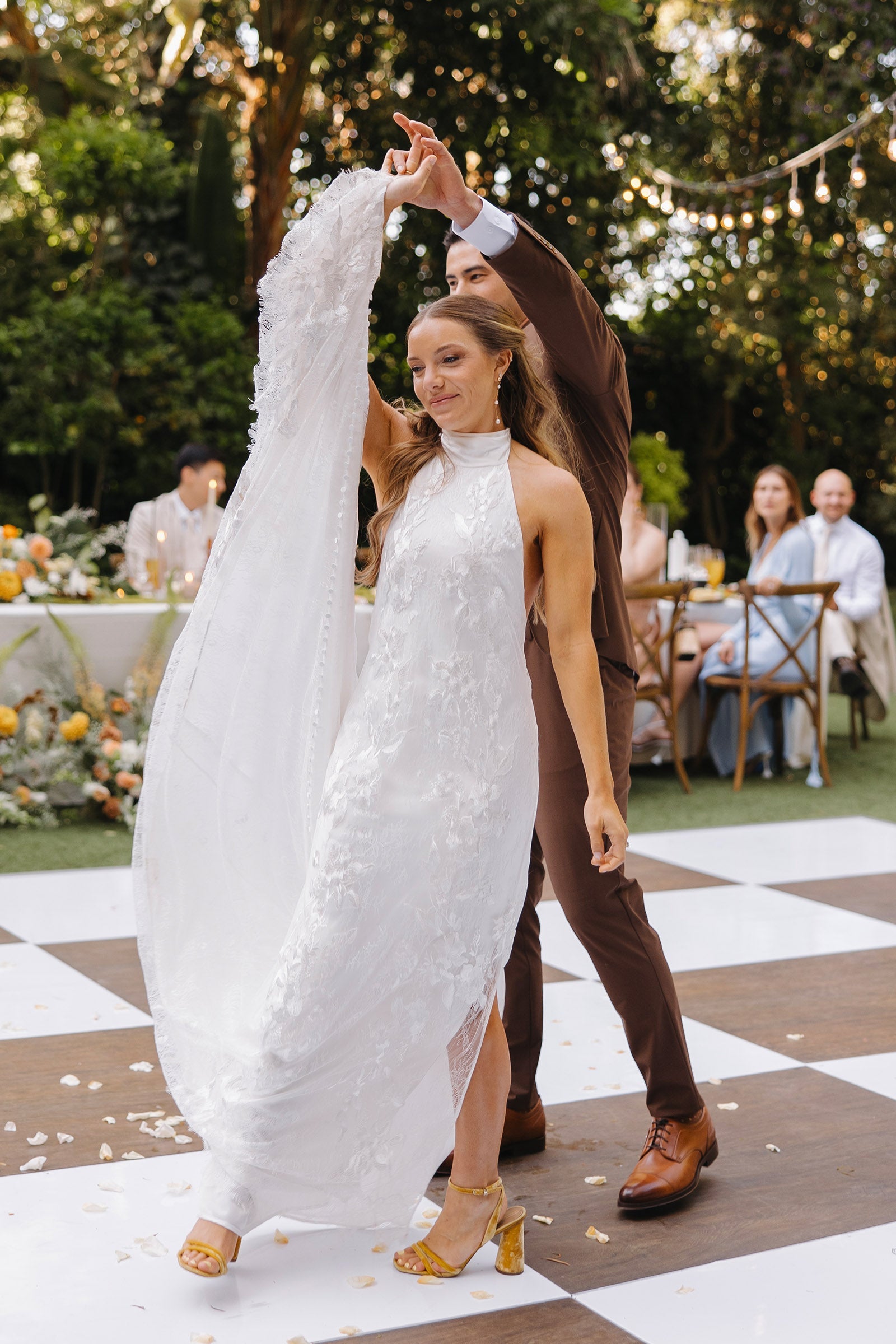 • I loved feeling free and flowy. I didn’t want to feel constricted or heavy in a wedding gown and my dress made me feel so comfortable. The delicate detail in the lace of the gown was beautiful and I love that it was made to fit my body and I didn’t have to stress about gaining or losing weight before my wedding and needing last minute alterations.